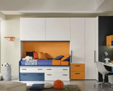 Moretti Compact Camerette soddisfa il gusto dei giovani e le richieste degli adulti con le sue Camerette moderne salvaspazio, ideali per necessità di ogni tipo. Vieni nel nostro showroom e potrai toccare con mano tutte le più originali composizioni d'arredo salvaspazio moderne di Moretti Compact Camerette per i più giovani. Con una composizione arredativa Moretti Compact Camerette, potrai completare con funzionalità e design lo spazio in cui i tuoi figli passano gli anni importanti della vita. Cromie di tendenza e progetti articolati ad hoc caratterizzano le più originali proposte del rinomato marchio che proponiamo nel nostro showroom. La Cameretta a ponte KC412 di Moretti Compact in melaminico è un mondo complesso da decorare con attenzione, coniugando vari accessori su misura.