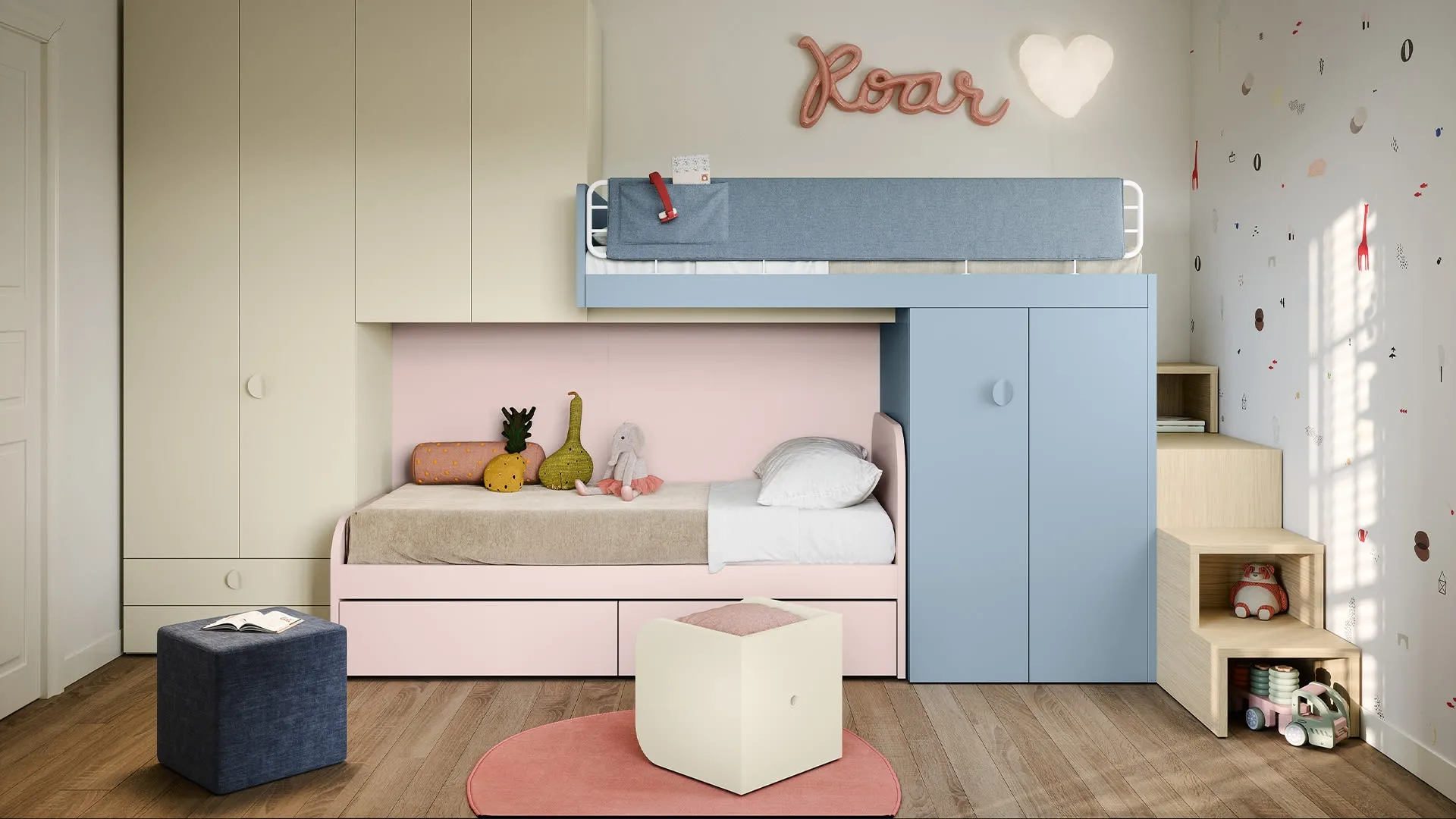 Questa proposta in melaminico ultima perfettamente le doti di praticità e l'estetica della camaretta, poiché è capace di congiungere funzionalità ed ergonomia. Nidi offre una ricca gamma di accessori da comporre su misura: troverai letto, guardaroba, scrivania, sedie e librerie. Se cerchi spunti progettuali per arredare perfettamente la stanza dei tuoi figli, ti proponiamo la Cameretta con letti a soppalco di Nidi con finitura in melaminico. Nell'arredo della stanza dei bambini affidati a noi: in negozio proponiamo tutte le più belle composizioni moderne per la loro camera.