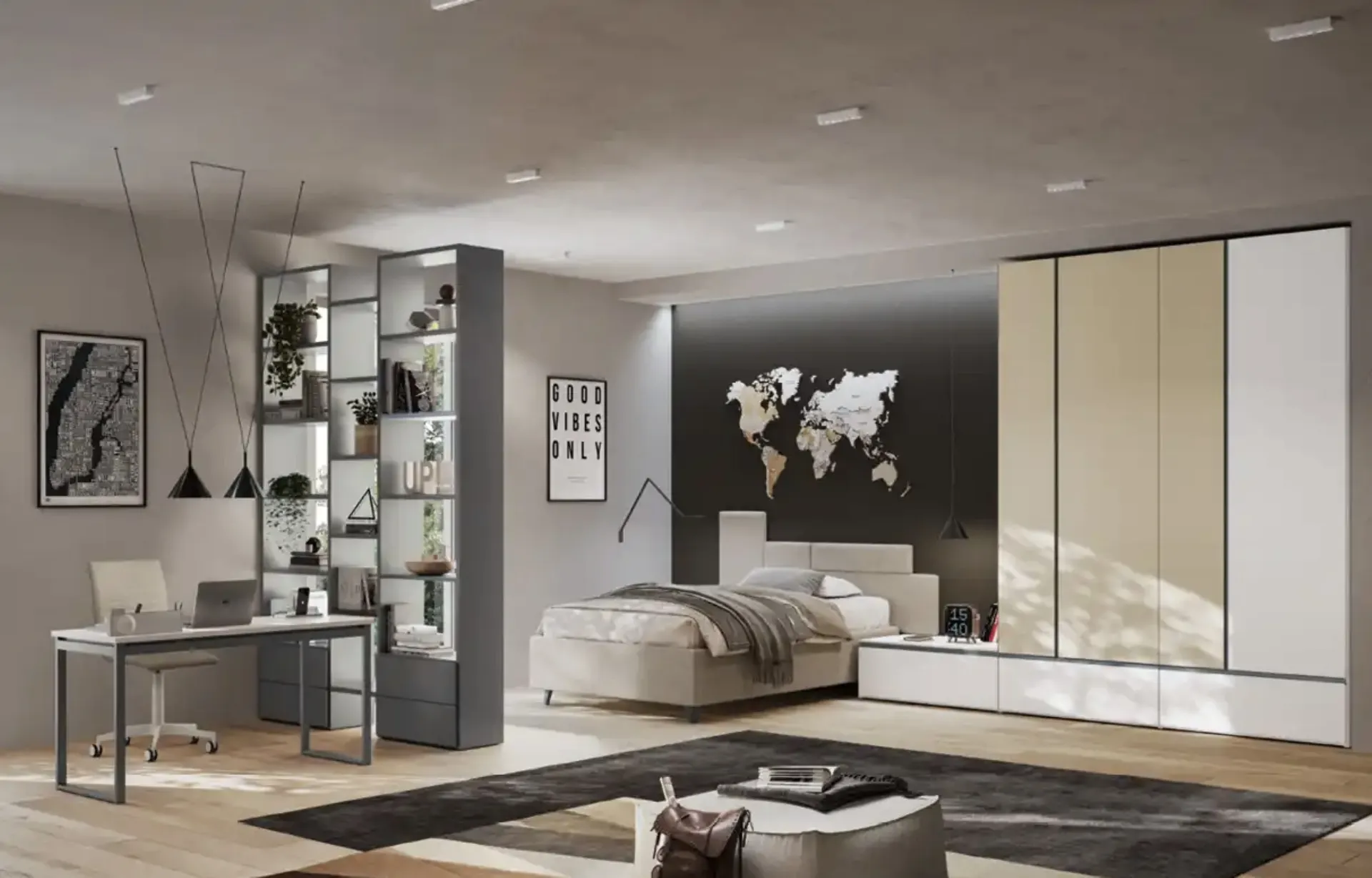 Moretti Compact Camerette soddisfa lo stile dei piccoli e le esigenze degli adulti con le sue Camerette design componibili, ideali per necessità di ogni tipo. Vieni in negozio e potrai visionare in prima persona tutte le più esclusive composizioni d'arredo componibili design di Moretti Compact Camerette per i più piccoli. La Cameretta Y113 di Moretti Compact Camerette in laccato opaco è un ambiente articolato da decorare attentamente, coniugando diversi accessori su misura. Con una composizione arredativa Moretti Compact Camerette, potrai ultimare con praticità e design lo spazio nel quale i tuoi figli trascorrono gli anni più importanti della vita.