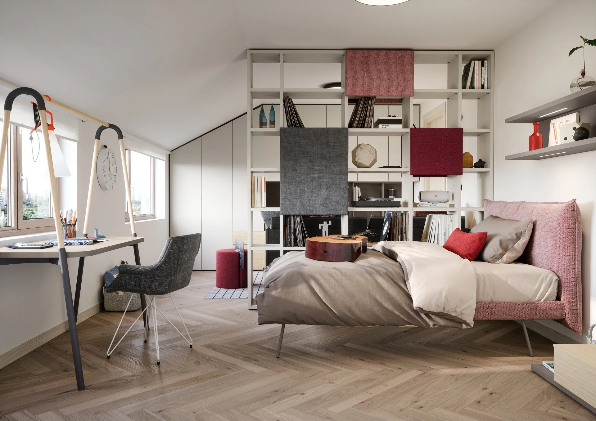 Se vuoi mobili ed elementi accessori moderni, il letto singolo nell'immagine fa per te: #appartiene alla@# nostra serie di letti singoli imbottiti. Il Letto singolo Pillow di Nidi nell'immagine è ideale per ultimare perfettamente la cameretta dei tuoi figli, abbinandosi alla perfezione con armadi e comò, elementi accessori e quant'altro. Questo è uno dei prodotti più originali della firma Nidi, sinonimo di resistenza negli anni, qualità delle finiture e uno stile unico. Contattaci e ottieni informazioni sulla nostra serie di Letti singoli in tessuto: arreda la camera dei più piccoli come l'avevi immaginata.