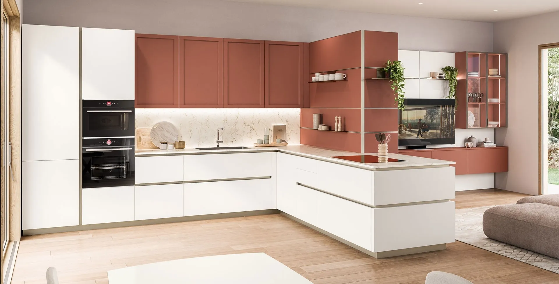 Scegli la cucina che fa al caso tuo tra le differenti soluzioni con penisola disponibili in commercio: potrai ammobiliare gli spazi valorizzandoli appieno. Se sei un amante delle composizioni moderne e non vuoi rinunciare alla qualità assicurata dal rinomato brand, allora il nostro negozio è il posto perfetto. Il modello in laccato opaco nella fotografia, si può declinare in molteplici assetti, tonalità e finiture di grande valore estetico per lasciarti arredare gli spazi con razionalità, assicurandoti la funzionalità e contenitività di cui hai bisogno.